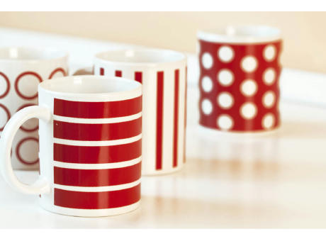 Tassenset aus Keramik mit vier Tassen in bunter Geschenkbox. Fassungsvermögen: 325ml / Tasse