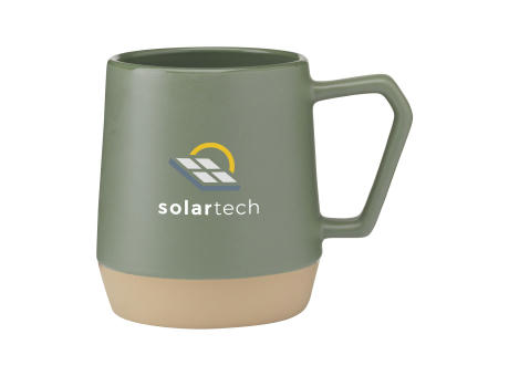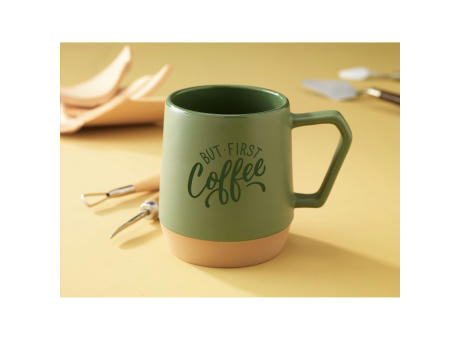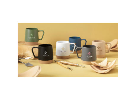 Becher mit Henkel aus hochwertiger Keramik und 5% recycelter Keramik. Die Innenseite ist hochglänzend ausgeführt. Der untere Teil des Bechers ist unglasiert und zeigt die natürliche, unbearbeitete Keramik. Natürliche Tonvariationen verleihen diesem Becher seinen einzigartigen Charakter. Spülmaschinengeeignet. Fassungsvermögen 330 ml. NOTIZ: Der weiße Becher kann nicht mit einer Lasergravur versehen werden, da diese nicht ausreichend sichtbar ist. Recycelte Keramikbecher werden hergestellt, indem Rohstoffe mit Bruchstücken von zerbrochenen oder unbrauchbaren Bechern, die in derselben Fabrik gesammelt wurden, vermischt werden. Die ausgemusterten Komponenten werden zu Pulver zermahlen und dann mit wichtigen Substanzen wie Kaolin und Quarz vermischt, bevor sie zu neuen Keramikprodukten verarbeitet werden. Um eine optimale Qualität zu gewährleisten, besteht das Endprodukt in der Regel zu 5 bis 10% aus recycelter Keramik. Die Verwendung von recycelter Keramik fördert die Kreislaufwirtschaft und reduziert den Bedarf an neuen Rohstoffen.