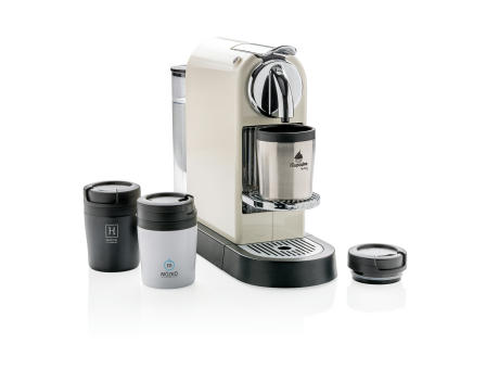 Weniger ist mehr. Mit einer Höhe von nur 8cm passt dieser doppelwandiger Becher perfekt unter Ihre Kaffeemaschine. PP im Inneren. Perfekt für Ristretto, Espresso und Kaffee Lungo. Nur Handwäsche. Inhalt: 160ml. Geschütztes Design®