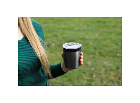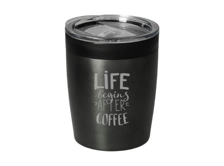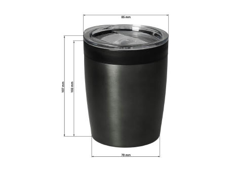 Der passt immer. Doppelwandiger Kaffeebecher, der unter fast jede Kaffeemaschine und in fast jeden gängigen Getränkehalter im PKW passt. Außen aus Edelstahl und innen aus Kunststoff hält er durch die integrierte Silikondichtung im Deckel das Getränk dort wo es bleiben soll. Die Nase am Deckel ermöglicht ein einfaches Öffnen. Füllmenge: 0,28 Liter.