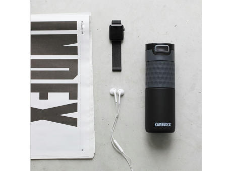 Der ideale Thermobecher der Marke Kambukka® für unterwegs • hervorragende Qualität • attraktives Design • praktische Größe • vakuumisolierter 18/8-Edelstahl • hält Getränke bis zu 9 Stunden warm und bis zu 18 Stunden kalt • 3-in-1-Deckel mit 2 Trinkpositionen: kurz drücken und schnell einen Schluck trinken oder ganz öffnen, um so bequem und ohne Verschütten zu trinken • dank Snapclean® leicht zu reinigen: entfernen Sie den inneren, spülmaschinenfesten Mechanismus in einer Bewegung. • Universalverschluss: passt auch auf andere Kambukka® Trinkflaschen • der Verschluss ist spülmaschinengeeignet - den Becher mit der Hand spülen • gummierter Griff • 100% auslaufsicher • Fassungsvermögen 500 ml. • Der schwarze Thermosbecher kann nicht mit einer Lasergravur versehen werden. LAGERBESTANDSINFORMATION: Bis zu 1.000 Stück innerhalb von 6 Tagen verfügbar. Ausnahmen vorbehalten.