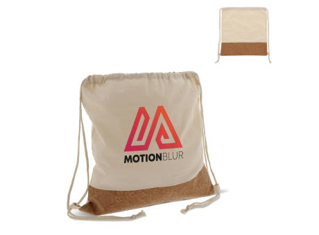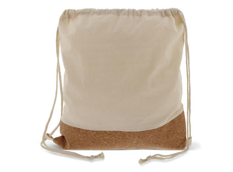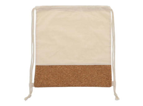 Rucksackbeutel aus Baumwolle und Kork. Einfach und bequem um auf dem Rücken zu tragen.