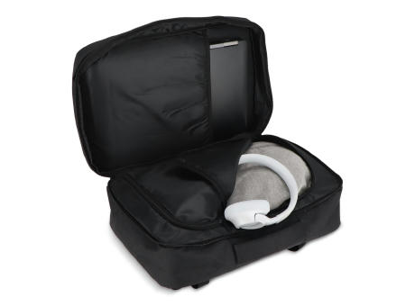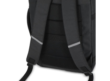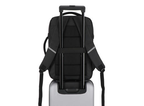 Dieser Rucksack ist für den modernen Reisenden konzipiert. Er lässt sich um 180 Grad öffnen und verfügt über eine verdeckte Tasche für Kleidung auf der einen und ein gepolstertes Laptopfach auf der anderen Seite. Die geräumige Vordertasche bietet einfachen Zugriff auf Zubehör und wichtige Dinge. Die Tasche ist mit gepolsterten Griffen, verstellbaren Schultergurten und einem gepolsterten Rückenteil ausgestattet. Mit dem rückwärtigen Riemen lässt sich der Rucksack bei längeren Reisen sicher über den Griff eines Trolleys schieben. Reflektierende Details erhöhen die Sichtbarkeit und Sicherheit bei Nachtfahrten.