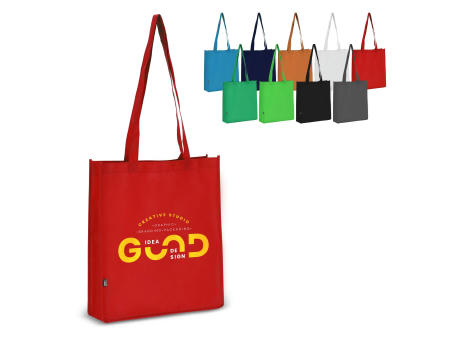 Tragetasche aus 100 % recyceltem Non Woven. Mit robusten, genähten Griffen und einem geräumigen Innenraum, perfekt für den täglichen Gebrauch. Eine nachhaltige und günstige Alternative.
