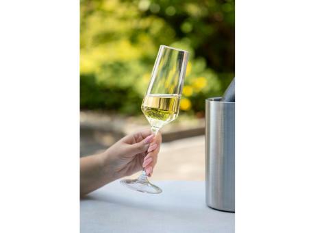 Das Sektglas "Vista" besticht durch sein stilvolles Design und das bruchsichere PMMA-Material. Es ist ideal für feierliche Anlässe und verleiht jedem Event einen eleganten Touch. Ob drinnen oder draußen – dieses Glas bietet die perfekte Kombination aus Ästhetik und Funktionalität, ohne auf Langlebigkeit zu verzichten. Spülmaschinengeeignet bis 50°C. Füllvolumen: ca. 240 ml