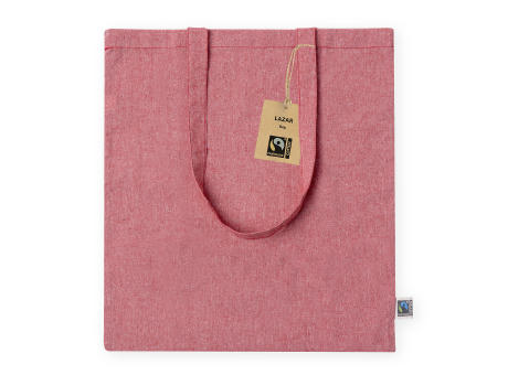 Tasche Fairtrade Linie Tasche, hergestellt aus Baumwolle 120g/m2. Genähte Oberfläche, mit 70 cm langen Griffen und Belastbar bis zu 7 kg, einschließlich Fairtrade-Label und Hangtag aus recyceltem Karton. Mit Fairtrade-Zertifizierung, eine Alternative zum konventionellen Handelssystem, das die Entwicklung der Völker und die Bekämpfung der Armut verfolgt.