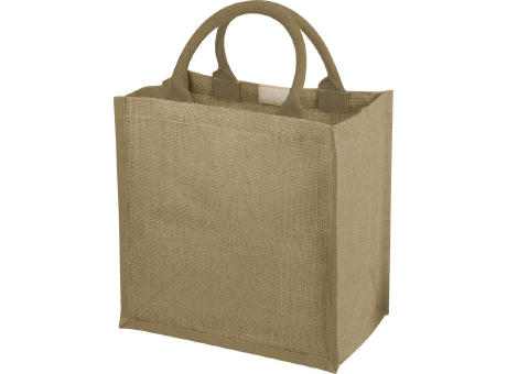 Die Chennai Tragetasche ist der perfekte Begleiter für Ausflüge in den Park, zum Strand oder zum Einkaufen. Mit ihrem Jutematerial ist sie eine nachhaltige Wahl. Die Tasche verfügt über ein laminiertes offenes Fach und einen Zwickel, wodurch sie sich ideal für den Transport schwerer Gegenstände eignet. Die Baumwollgriffe garantieren einen guten und bequemen Halt und der Klettverschluss sorgt zusätzlich dafür, dass alle Habseligkeiten sicher und geschützt bleiben. Hergestellt in Indien und OEKO-Tex zertifiziert. Belastbar bis zu 10 kg.