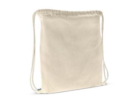 Rucksackbeutel aus Baumwolle und Jute. Einfach und bequem um auf dem Rücken zu tragen.