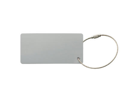 Rechteckiger Alumimium Kofferanhänger mit Draht und Verschluss.