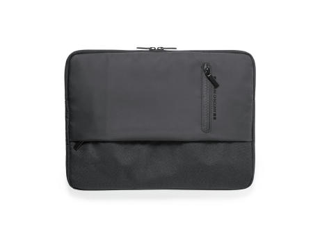 Laptop-Tasche Robuste Dokumentenhülle aus weichem Soft-Shell mit Reißverschluss und Fronttasche. In elegantem Schwarz mit farbigen Verstärkungen an den Griffen.