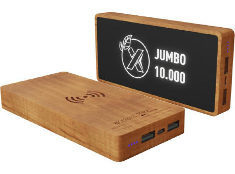 10.000 mAh kabellos aufladbare Powerbank aus Holz mit antibakterieller Gummierung. Die Powerbank verfügt über einen doppelten 2A USB Ausgang und ist Qi kompatibel. Wird mit einem 3-in-1-Ladekabel aus recyceltem PET geliefert. Verpackt in einer Geschenkbox aus recyceltem Kraftpapier (18,5 x 10 x 2,5 cm) mit Magnetverschluss. Inklusive 3 Jahre Garantie.