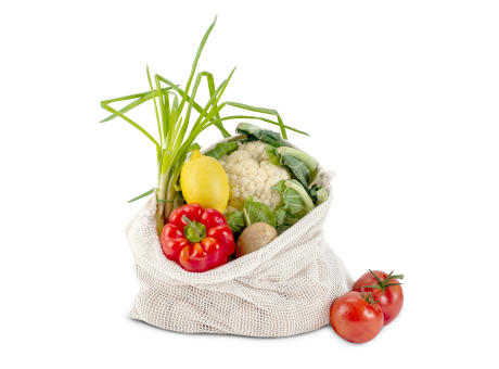 Reduzieren Sie die Anzahl der Plastiktüten im Supermarkt, indem Sie Ihren eigenen Lebensmittelbeutel verwenden. Dieser ungebleichte Baumwollbeutel mit Netz ist sehr gut für Obst und Gemüse geeignet. Verwenden Sie ihn immer wieder und wenn er schmutzig ist, waschen Sie ihn einfach bei niedrigen Temperaturen (könnte einlaufen).